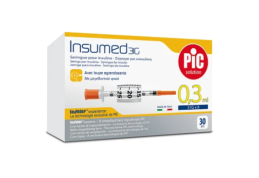 • the volume of the syringe is 0.3 ml. (30 units)